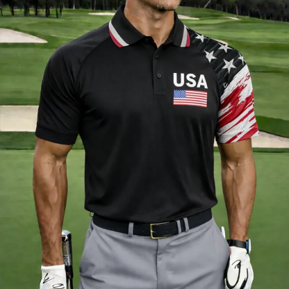 US 250th Anniversary Eagle & Star-Spangled Sleeve Men’s Polo Shirt